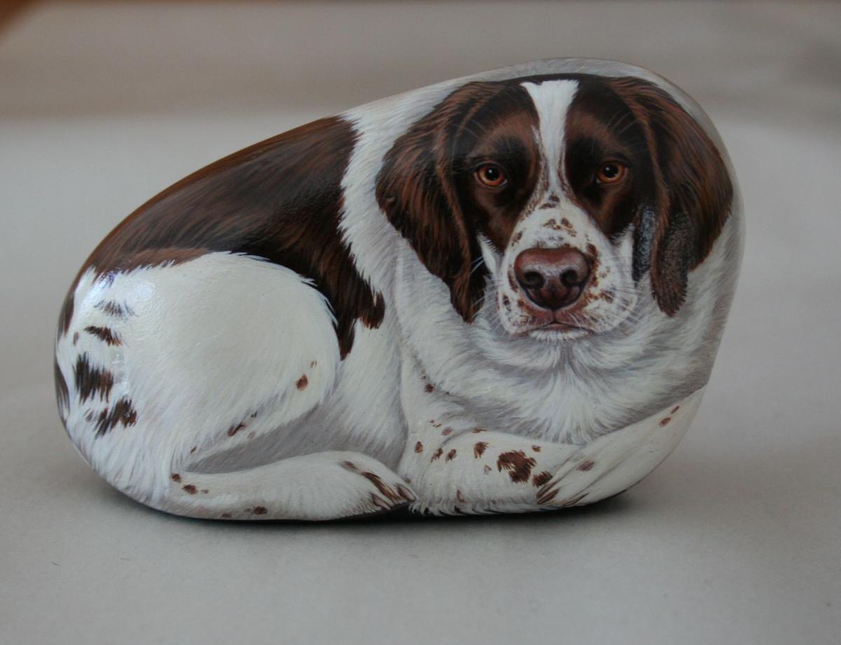 Acrylic Paint on Beach Stone 4"L x 2 3/4"T x 1 3/4"D